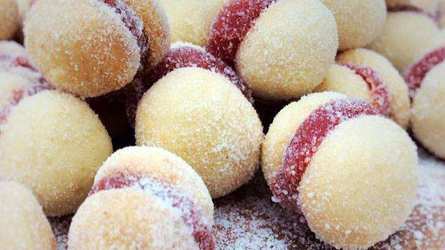 Depois que os biscoitinhos estiverem assados, coloque um pouquinho de goiabada em cada parte e feche com a outra, formando o casadinho.