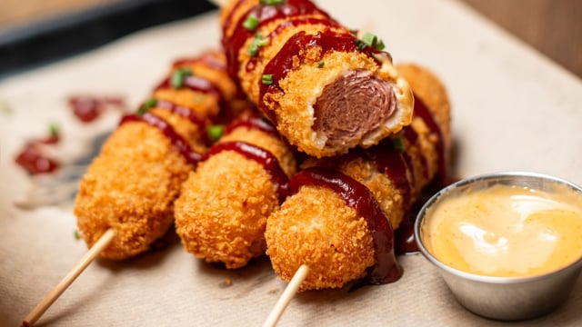 Enfie as linguiças (com atenção) em palitos de churrasco