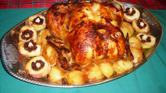 Leve ao forno, a 180°, por cerca de 2 h, deixando na metade do tempo o peito virado para baixo.