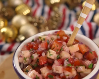 Em uma tigela adicione abacaxi, tomate, cebola e tempere com azeite, limão, pimenta, sal e o cheiro verde e misture muito bem!