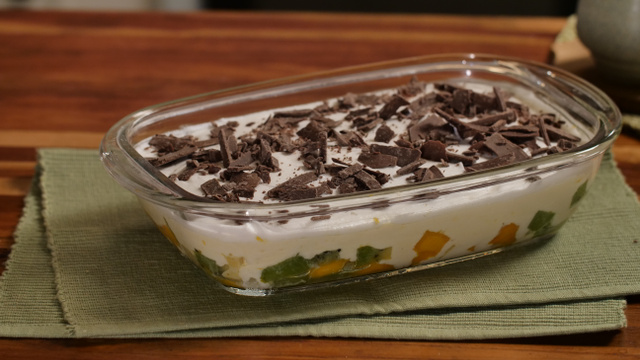 Por cima, coloque o creme preparado e ajeite com uma colher