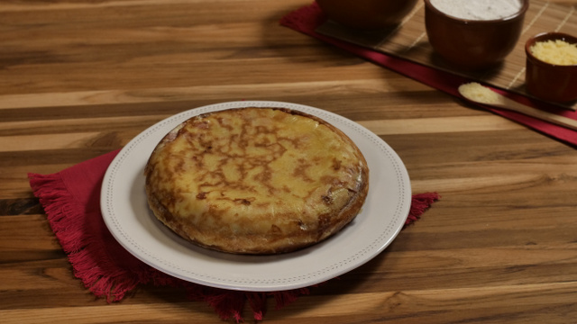 Cubra com a outra metade da massa, tampe a panela e espere dourar. Com a ajuda de um prato, vire e doure do outro lado.
