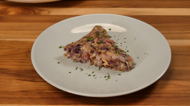 Em um recipiente, coloque a cebola roxa picada