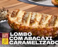 Com metade da casca, vá intercalando pedaços do lombo e do abacaxi até cobrir tudo e terminar os ingredientes