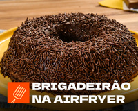 Que tal preparar uma sobremesa super-rápida? O brigadeirão na aifryer é a sobremesa perfeita para quem quer mais praticidade naquele almoço de família. Praticamente um pudim de chocolate, o brigadeirão é assado no forno em banho-maria para que a mistura dos ingredientes cozinhe em temperatura mais baixa e mais devagar. Para que a receita funcione, é preciso usar uma forma que caiba dentro do cesto da air fryer. O tamanho pode variar com o aparelho, mas provavelmente será um recipiente menor. Não é preciso colocar água para fazer o cozimento do brigadeirão de air fryer, o ar quente bastará para que o doce não fique cru. Para servir bem e enfeitar a mesa, aguarde o brigadeirão esfriar para desenformar. Mantenha o brigadeirão na geladeira até a hora de servir. E pouco antes de levá-lo à mesa, adicione o chocolate granulado que você guardou até agora. O brigadeirão de airfryer é sucesso garantido no seu almoço de família.