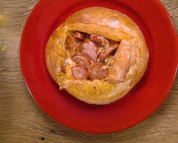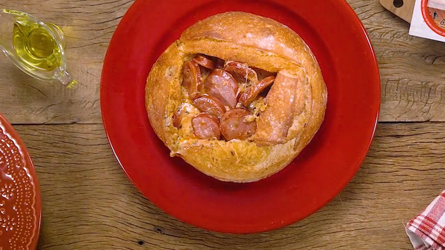 Corte a tampa e o miolo de um pão italiano.