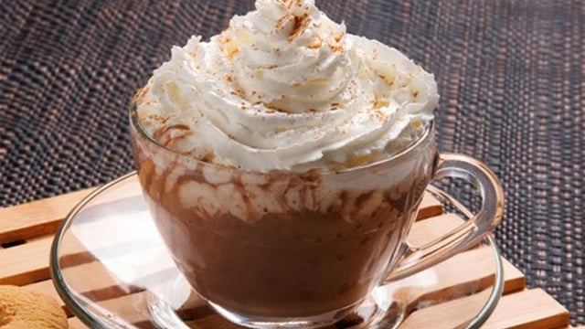 Para um sabor especial pode se colocar chantilly sobre a xícara de chocolate.