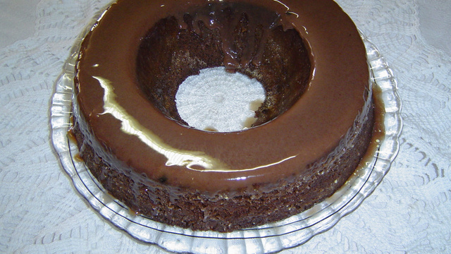 Em uma forma refratária com o furo no meio, coloque as duas colheres de manteiga ou margarina, e derreta no microondas.