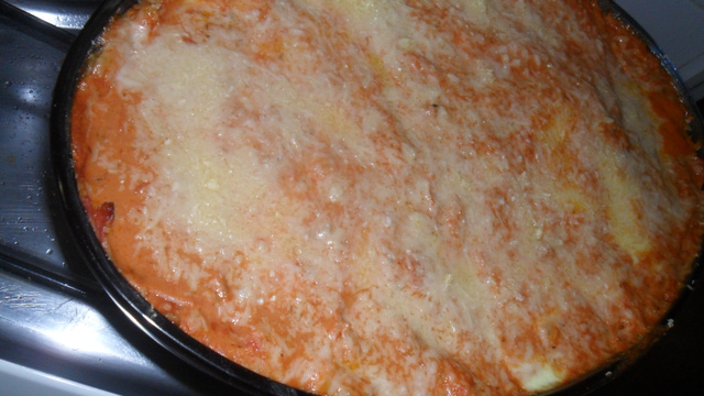 Leve ao fogo pra gratinar até que esteja bem douradinho e o queijo derretido.