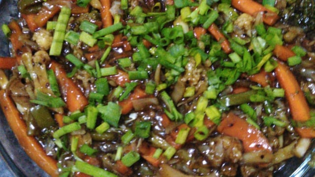 Misturar os ingredientes do molho e derramar sobre o refogado.