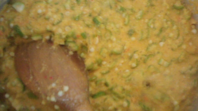 Mexa por uns 25 minutos ou até os quiabos cozinharem.