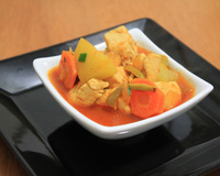 Corte o frango e os legumes em cubos.