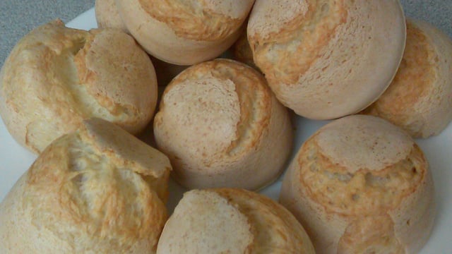 Obs.: Não preencha a forminha com massa até o limite, de preferência encha até a metade, pois os pãezinhos crescem bastante.