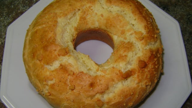 O bolo de pão de queijo é uma boa opção de lanche. Nessa receita, em vez de colocar para assar em várias pequenas formas de empadinha, o bolo de pão de queijo é assado em uma forma redonda com furo no meio, a mesma usada para fazer pudim. É importante ter cuidado de usar uma forma grande o suficiente para assar. O fermento em pó e o polvilho doce podem fazer o bolo crescer demais, e uma forma pequena pode transbordar e sujando o seu forno. A mistura é toda feita no liquidificador. A textura da massa é parecida com um bolo comum, então você não precisa usar as mãos para juntar os ingredientes. O importante é que depois de alguns minutos no forno, seu bolo de pão de queijo estará douradinho e fofinho. Para complementar, você pode colocar um pouco de queijo ralado sobre a massa para dar aquele efeito gratinado delicioso. Pode fazer essa receita que você não vai se arrepender!