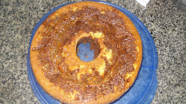Coloque em assadeira grande, pois o bolo cresce muito.