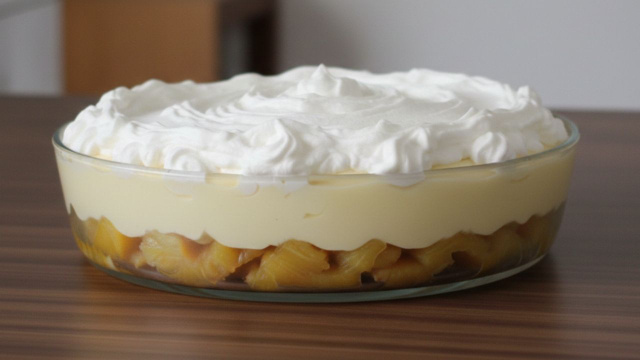 Cozinhe por 1 minuto e despeje esse creme em cima do doce de abacaxi, espalhando bem.
