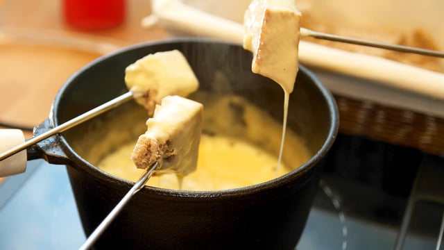 Coloque o fondue dentro do pão, caso não tenha o aparelho próprio para fondue.