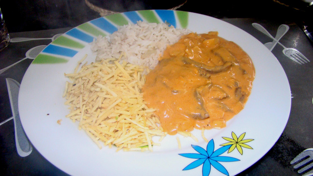 Servir com arroz acompanhado de batata palha!