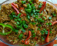 Pique o tomate, a cebola, o cheiro verde, o pimentão, junte o alho a pimenta e leve tudo ao fogo baixo, com a panela tampada para abafar bem.