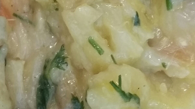 Em seguida, jogo sobre a mandioca , o óleo com os ingredientes.