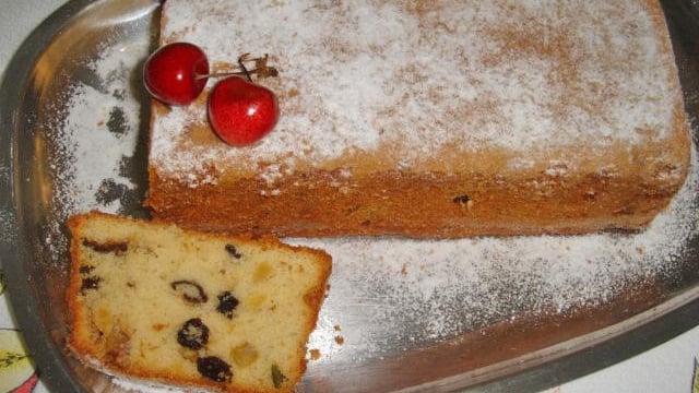 Adicione essências de sua preferência (laranja, limão, abacaxi) ou as frutas cristalizadas e a farinha.