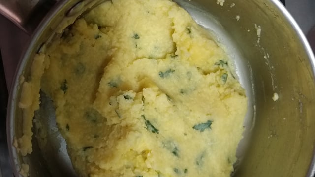 Caso você não possua um, amasse as batatas por completo com um garfo, dentro da própria panela.