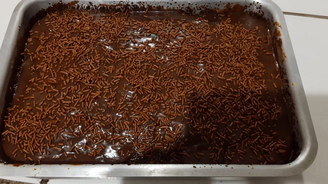 Quando o bolo estiver pronto, jogue a calda no bolo ainda quente.