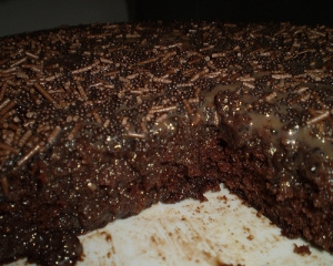 Faça um brigadeiro mole e aplique ainda quente sobre o bolo frio.