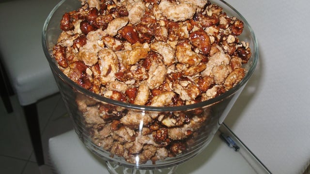 O forno quente serve penas para secar as castanhas carameladas.