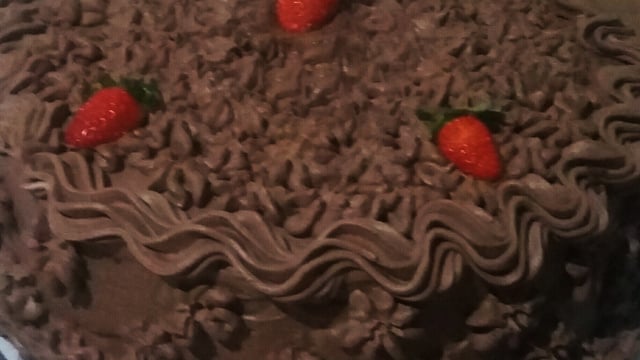 Cobrir a torta, já recheada, e polvilhar com chocolate granulado.
