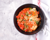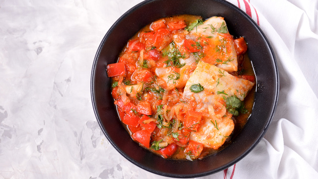 Acrescente o molho de tomate e cubra com água, agora não mexa mais no peixe.
