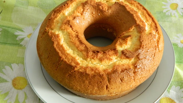 Bata todos os ingredientes na batedeira, menos o fermento, até a massa ficar bem clarinha.