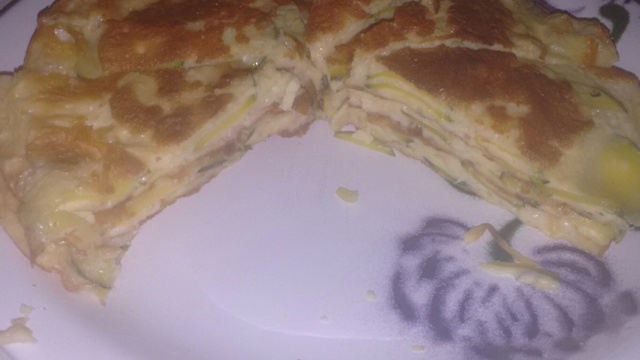 Misture a abobrinha ralada nos ovos já batidos, acrescente a cebola o cheiro verde e o sal mexa bem.