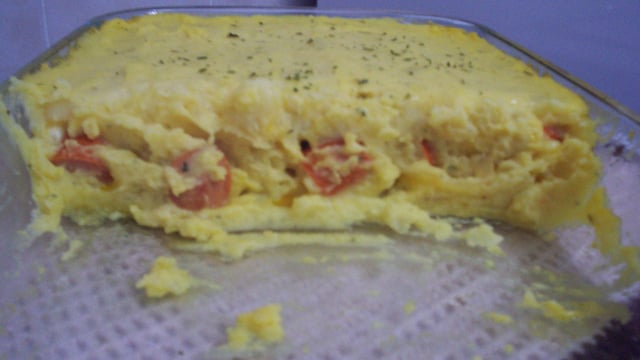 Unte um pirex, coloque metade do purê, espalhe o refogado de salsichas, cubra com o restante do purê, polvilhe queijo ralado e leve ao forno por 20 minutos.