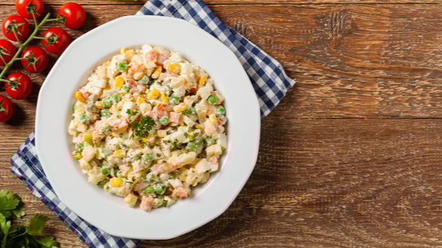 Junte a maionezes, o sal, o azeite de oliva e o vinagre, mexa mais.