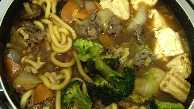Nota: Itens como a couve-flor, brócolis, tofu e o macarrão de Udon devem ser adicionados quando os outros ingredientes já estiverem quase no ponto, evitando assim que se despedacem. Muitos japoneses acrescentam o Tofu e o Macarrão de Udon depois que quase todos legumes e verduras já acabaram, só com o caldo. Você pode ir colocando mais ingredientes a medida que forem acabando (a panela pode estar em fogo baixo o tempo todo) Moro no Japão e aprendi esta receita com um amigo japonês, sempre fazemos em casa e todos adoram, então pode fazer que é garantido.