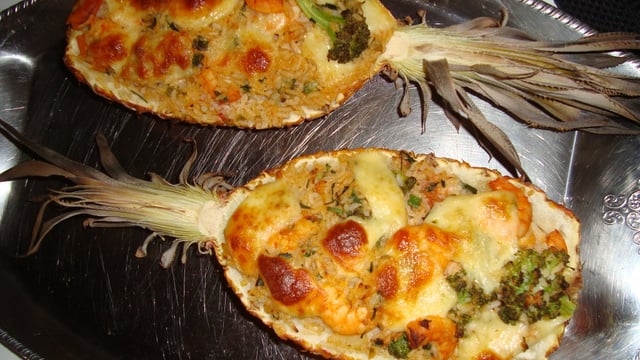 Colocar dentro do abacaxi e salpicar com parmesão.
