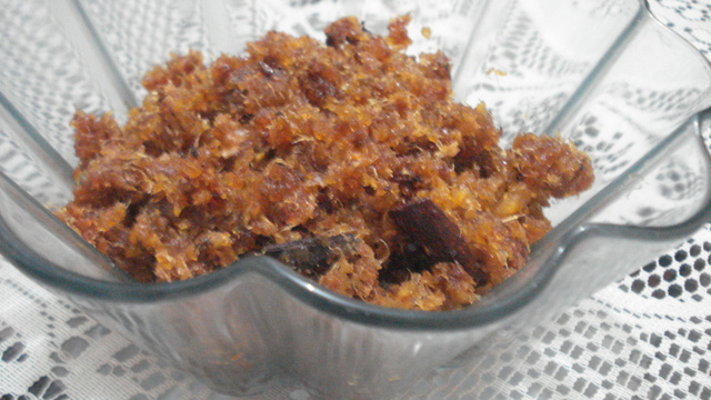 Leve ao fogo (médio/alto) a casca triturada, junto com o açúcar, o cravo, canela e a água. Mexa bem até ferver.