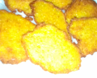 Em uma frigideira antiaderente, adicione 4 colheres de óleo, coloque 1 colher bem cheia de pamonha e espalhe com um garfo ou uma colher.