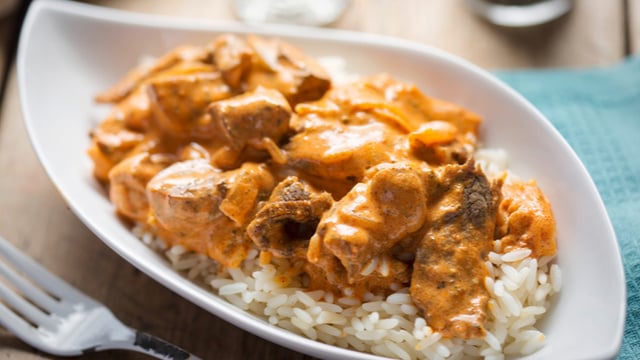 Depois de bem refogado, desligue o fogo e acrescente o creme de leite, mexendo bem.