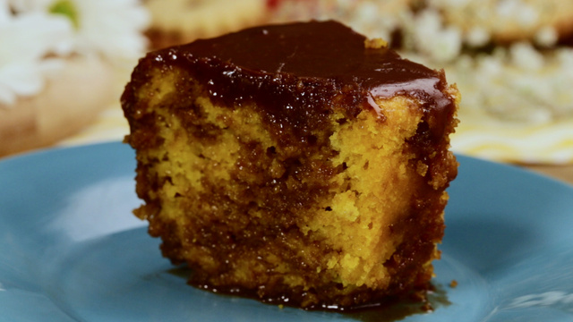 Faça furinhos no bolo ainda quente e despeje sobre ele.