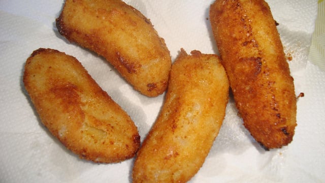 Minhas primeiras bananas à milanesa...rs...rs...Ficaram ótimas!Parabéns à dona da receita.É simples,ingredientes fáceis ,rápida de preparar e deliciosa!