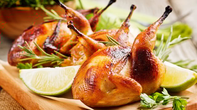 Tempere as codornas com sal e pimenta do reino, coloque o recheio.
