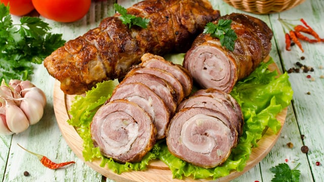 O rocambole de carne moída com presunto e queijo é uma receita que combina sabores clássicos em uma apresentação diferenciada. Repleto de ingredientes deliciosos, este prato é preparado com carne moída, creme de cebola, ovo, farinha de rosca, presunto, queijo prato e, se preferir, um toque de orégano para intensificar o sabor. A elaboração desse prato começa pela mistura da carne moída com o creme de cebola, ovo e farinha de rosca, formando uma massa homogênea. Essa massa é então espalhada e aberta sobre papel laminado, sobre a qual são dispostas generosas camadas de presunto e queijo. Após o recheio, o rocambole é cuidadosamente enrolado com o auxílio do papel laminado, assegurando que os ingredientes estejam bem distribuídos. Então, é levado ao forno para assar até ficar dourado e saboroso por fora, enquanto o queijo derretido e o presunto reforçam o interior com seus aromas irresistíveis. Ao servir, este prato pode ser acompanhado por batatas douradas, proporcionando uma refeição completa e satisfatória. O rocambole de carne recheado com presunto e queijo é uma opção culinária encantadora para surpreender e deliciar todos à mesa.