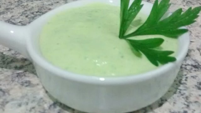 Após espremer o alho e ralar a cebola, junte todos os ingredientes no liquidificador, até que fique verde claro.