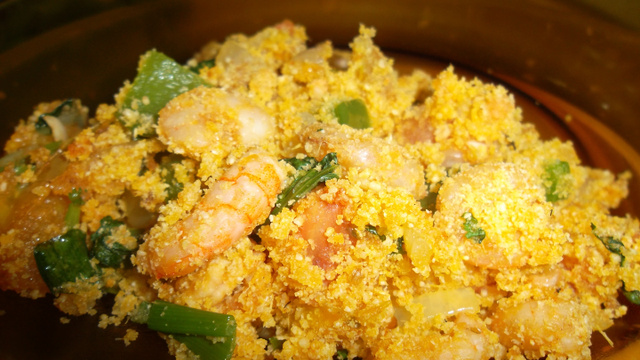 Frite os ovos nesse mistura e mexa-os, fazendo um ovo mexido com o refogado.