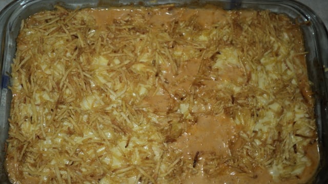 Despeje tudo em um refratário e cubra com o queijo, leve ao forno até derreter por igual o queijo.