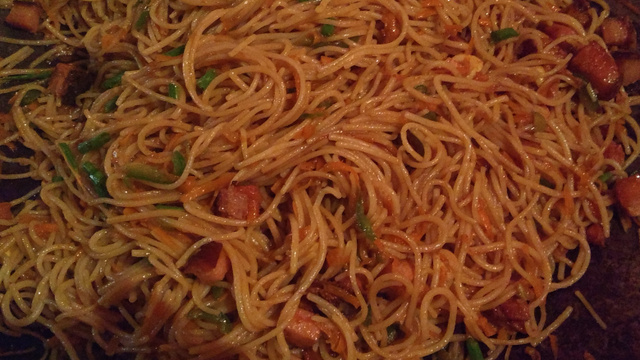 Novamente macarrão, shoyu e queijo, até ficar tudo bem misturado aos outros ingredientes e o queijo derretido.