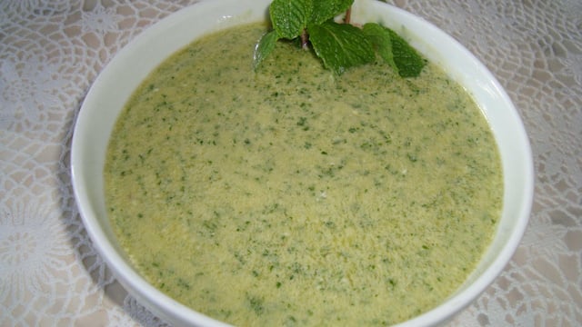 Lavar bem as folhas de hortelã e bater tudo no liquidificador ou mixer por poucos segundos.