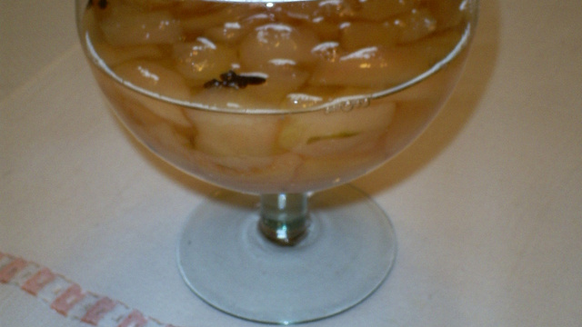 Quando a calda estiver pronta, junto as peras, deixe cozinhar por cerca de 10 minutos (não pode ficar muito mole, senão desmancha).